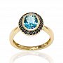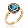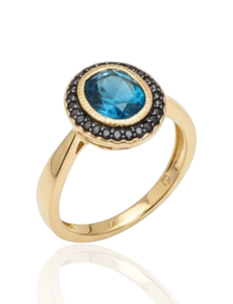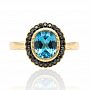 pierścionek złoty z topazem (London blue) 2.54 ct oraz 26 czarnymi diamentami o łącznej masie 0.16 ct
