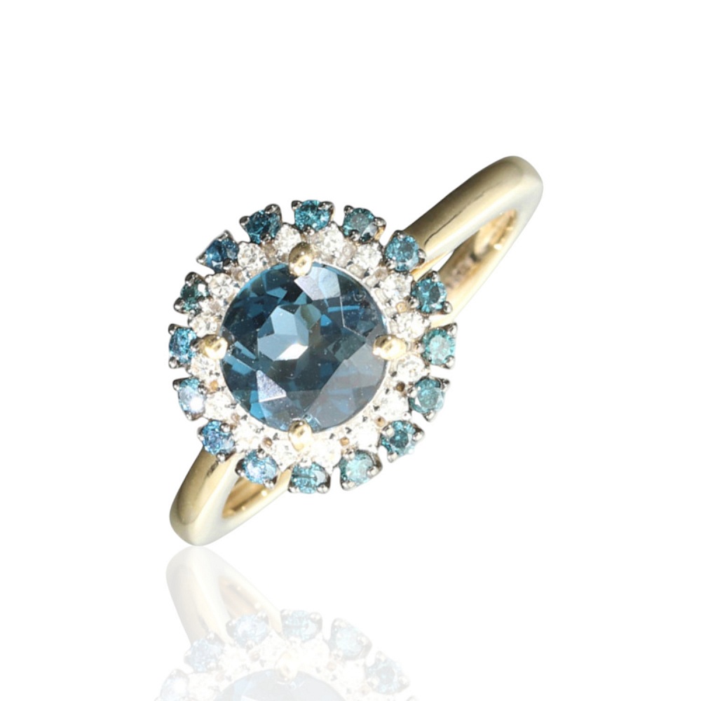 Pierścionek złoty z topazem i diamentami – połączenie luksusu i subtelności