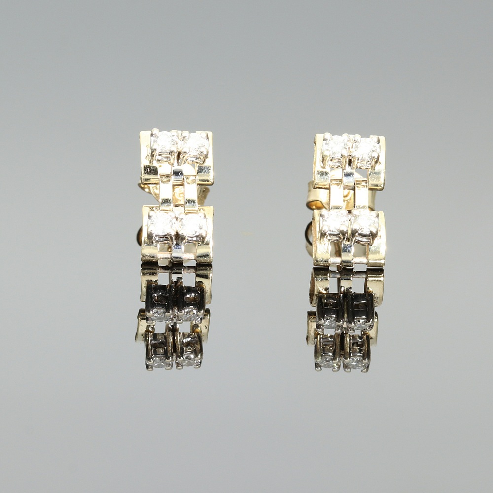 Z reszty elementów, które zostały z bransoletek, wykonaliśmy kolczyki. Połączyliśmy elementy z diamentami z elementami zakupionej u nas bransolety, zlutowaliśmy je razem, dorobiliśmy sztyft i zatyczki.