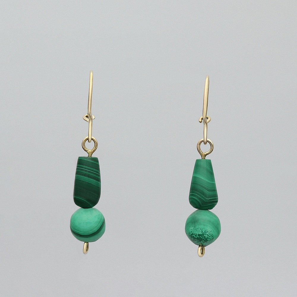 Kolczyki złote próby 585 z malachitami.