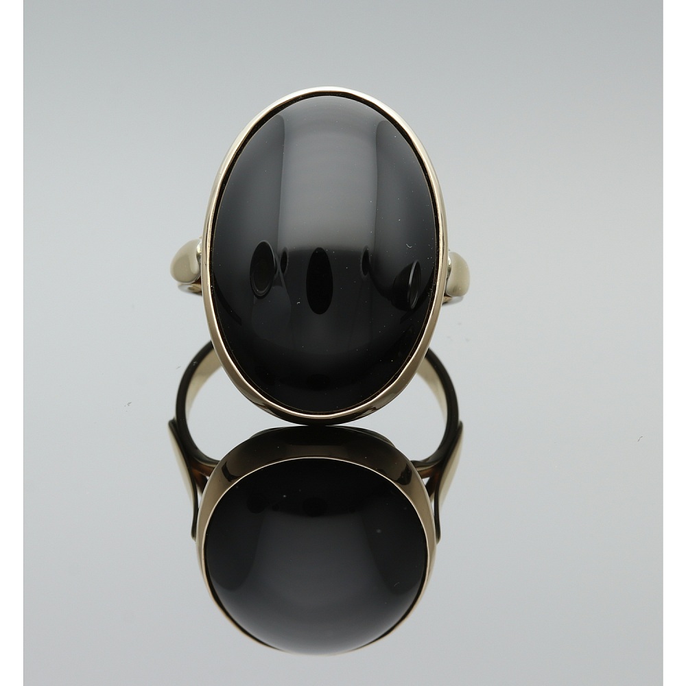 Pierścionek złoty z naturalnym onyksem.