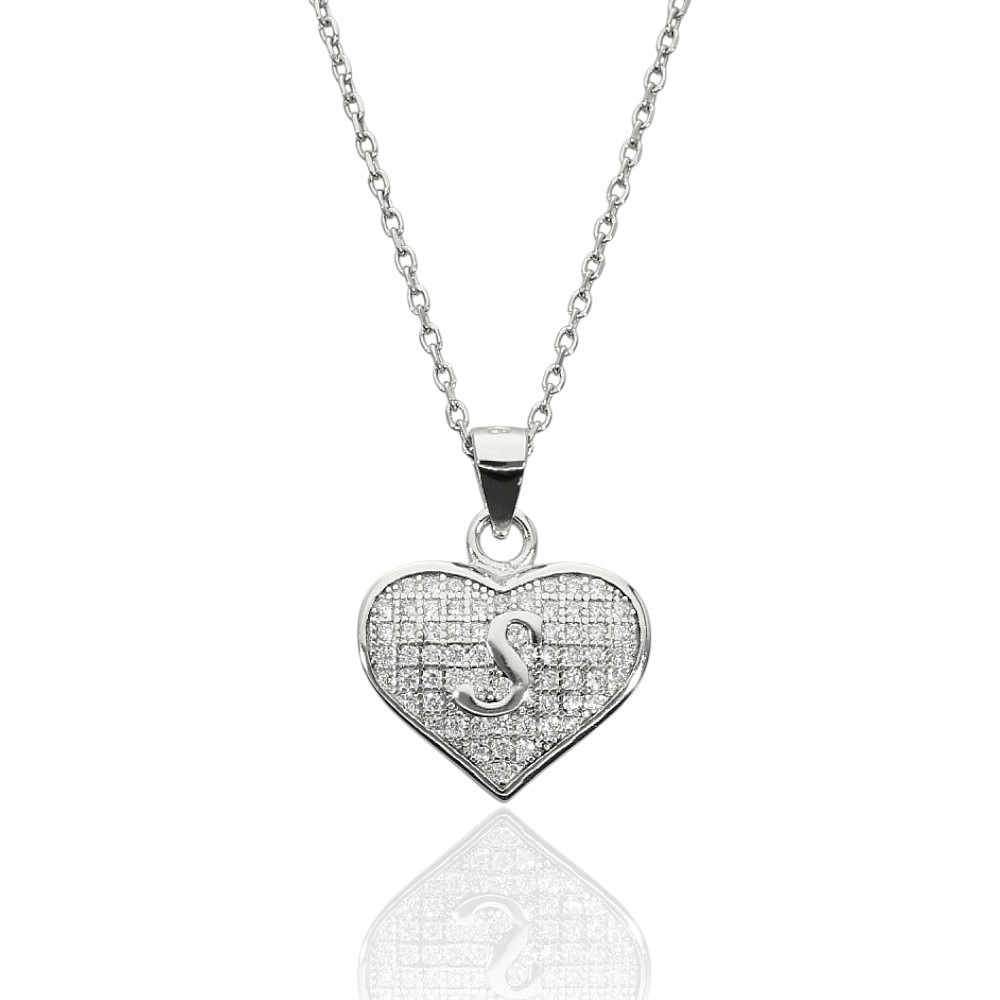 serce literka S z cyrkoniami