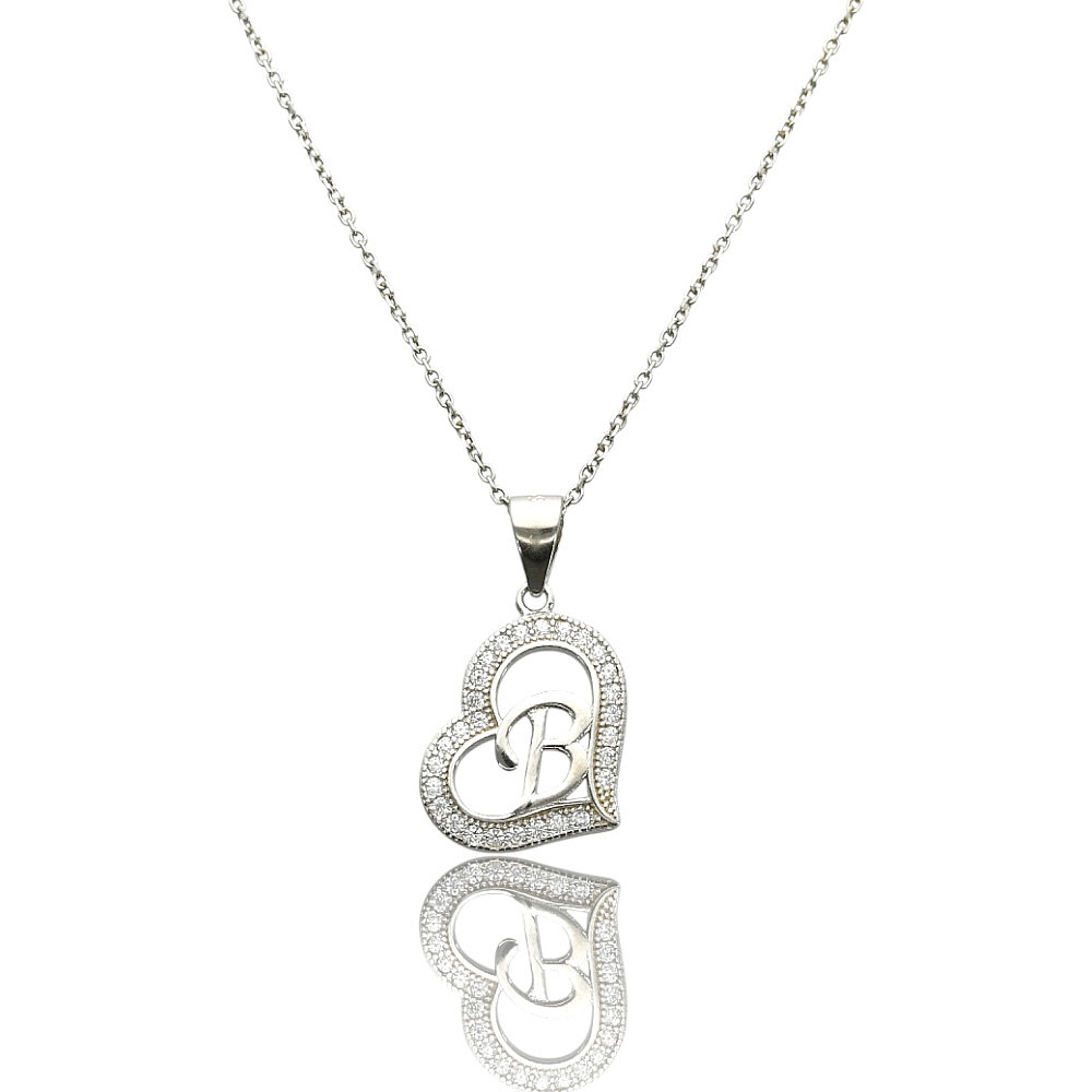 serce literka B z cyrkoniami
