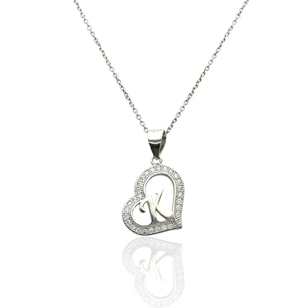 serce literka K z cyrkoniami