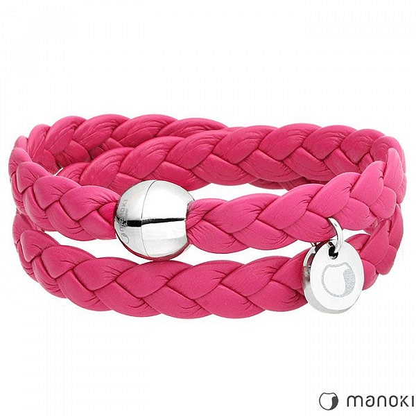 Bransoletka idealna dla kobiet lubiących wyrazistą biżuterię przyciągającą wzrok. Zrobiona jest z naturalnej, plecionej skóry zabarwionej na różowy kolor.