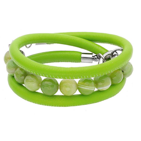 Zielony agat silnie wpływa na umysł, wprowadzając posiadaczkę w sferę równowagi. To cudowny dodatek, który pomoże Ci zwalczyć brak pewności siebie oraz wątpliwość w kwestii dokonywanych wyborów. Amulet Stabilizacji, jest znakiem sprzyjającego losu, ta bransoletka dedykowana przede wszystkim osobom, których przytłacza zbyt duża liczba obowiązków. Agat to kamień polecany osobom poszukującym nowej, życiowej drogi, leczących żal, chcących pokonać własne uprzedzenia. Kamień to nazywany jest amuletem równowagi, gdyż jego właściwości wpływają na zachowanie balansu w sferze: intelektualnej, emocjonalnej, zdrowotnej. Niegdyś wykorzystywany był przez starożytnych, jako element zbroi, zapewniający wgraną. Jeżeli pragniesz stać się osobą odważną, pewną siebie, zachowującą zdrowy rozsądek w sytuacjach wydających się bez wyjścia, biżuteria z agatem jest dla Ciebie doskonałym rozwiązaniem.
