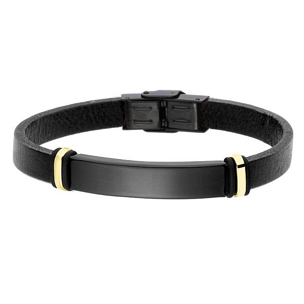 Elegancka i klasyczna bransoleta męska wykonana ze skóry naturalnej oraz stali szlachetnej 316L w kolorze czarnym z subtelnym elementem w kolorze złotym.