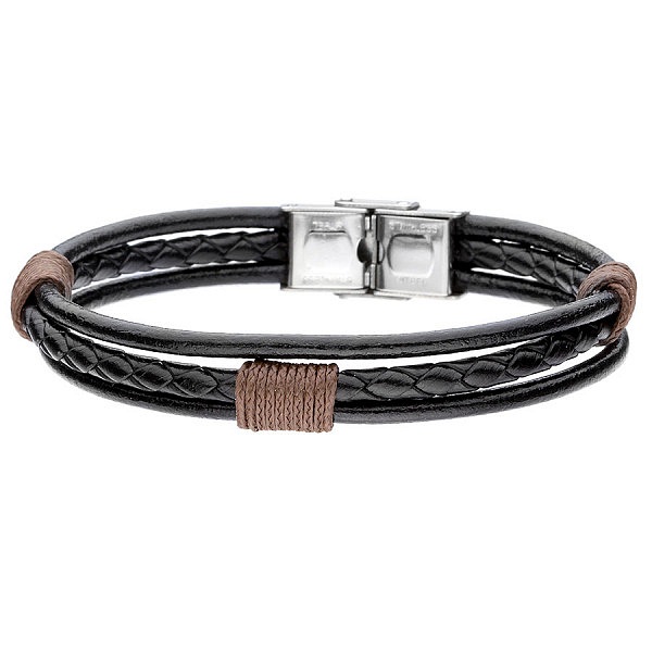 Stylowa bransoletka męska z czarnego rzemienia oraz plecionej skóry. Ozdobiona została czerwonymi elementami ze sznurka. Oryginalne zestawienie kolorów sprawia, że bransoletka wyróżni się na tle każdej stylizacji. Bransoletkę wyposażono w trwałe i wytrzymałe zapięcie z hipoalergicznej stali szlachetnej.