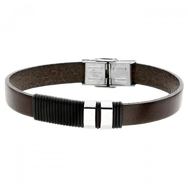 Doskonała biżuteria dla wszystkich mężczyzn lubiących oryginalne dodatki łączące w sobie klasyczny i nowoczesny design. Bransoletkę zrobiono ze skóry naturalnej, zdobi ją stalowa ozdoba. Model wyposażono w praktyczne i wytrzymałe zapięcie z hipoalergicznej stali szlachetnej. Stonowana kolorystyka oraz prosty fason sprawiają, że biżuteria ta pasuje do niemal każdej stylizacji.