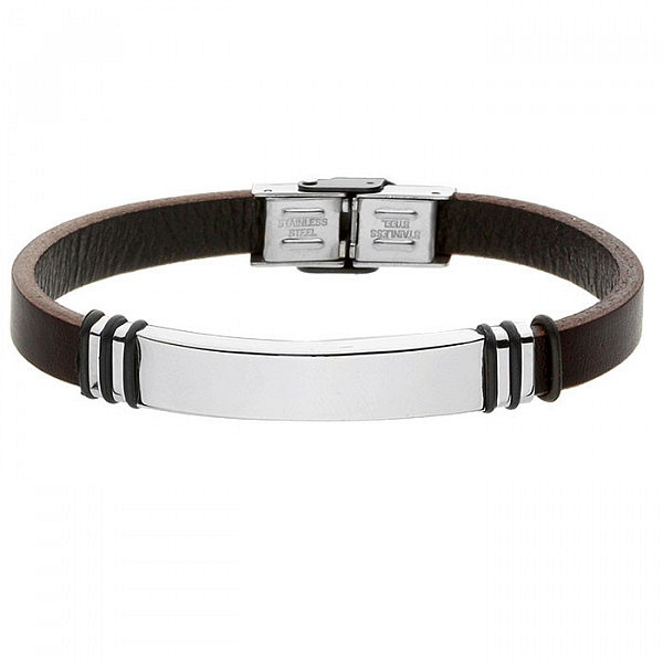 Klasyczna i elegancka bransoletka męska ze skóry naturalnej. Ozdobiona jest stalową blaszką, która idealnie nadaje się pod grawer.