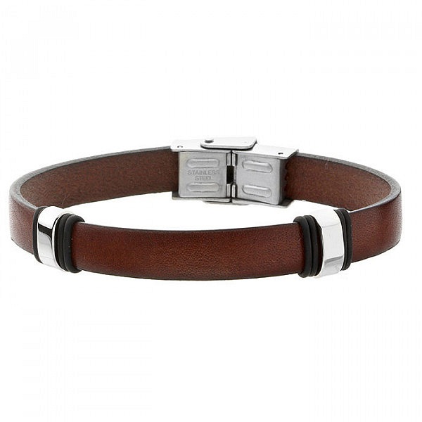 Idealna bransoletka dla fanów niebanalnych dodatków. Biżuterię zrobiono ze skóry naturalnej ozdobionej stalowymi ozdobami oraz gumą kauczukową. Model wyposażono w praktyczne i wytrzymałe zapięcie ze hipoalergicznej stali szlachetnej.