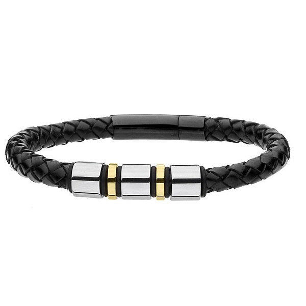 Bransoletka wykonana z naturalnego, plecionego, grubego rzemienia w kolorze czarnym. Zdobiona beadsami oraz czarnym zapięciem. Wykonana z hipoalergicznej stali szlachetnej 316L. Kolor uzyskano metodą PVD, trwałą i odporną na ścieranie. Niebanalny i oryginalny dodatek do wielu stylizacji zarówno tych do pracy, jak i na wieczorne spotkanie z przyjaciółmi.